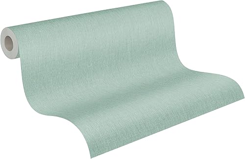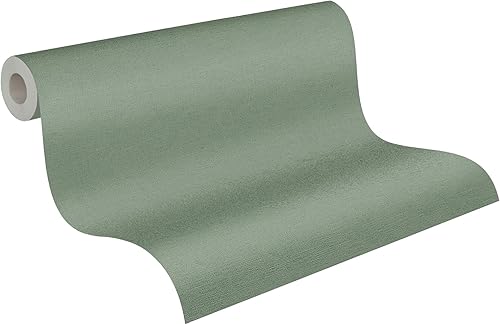 A.S. Création Cuba einfarbige Vliestapete mit Struktur 0,53 x 10,05 m – Grün – Uni Wandtapete für verschiedene Räume Made in Germany – 371787