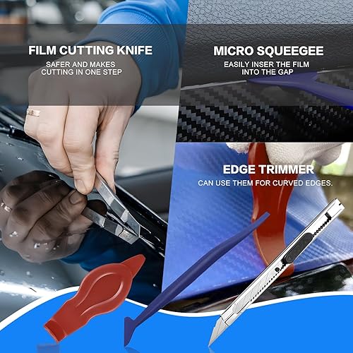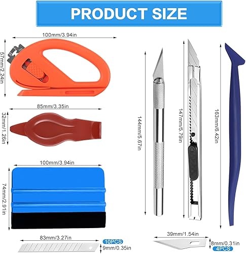 FAELNK 8 Stück Rakel Set für Tönungsfolie Auto Folierung Set Rakel Set für Folierung 2 Filzrakel Rakel Präzisionsmesser Cutter Messer mit 10 Klingen Car Wrapping Folie