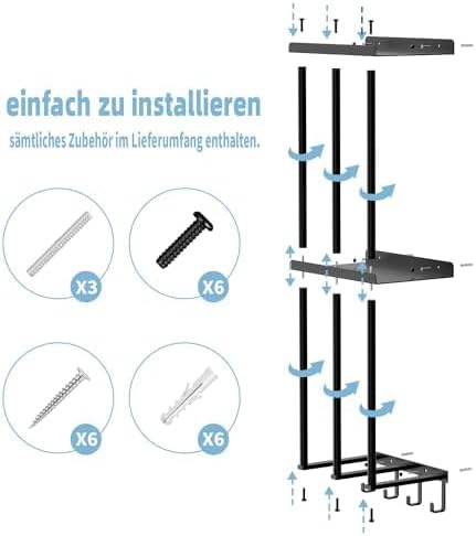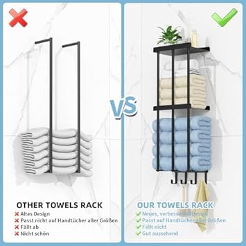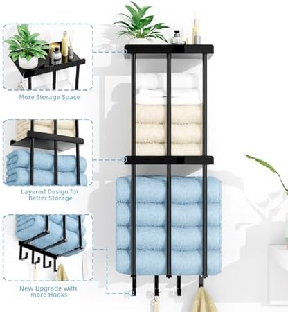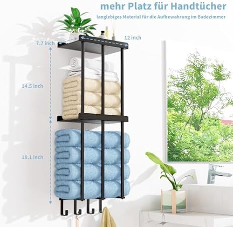 Handtuchhalter Ohne Bohren, Handtuchregal Selbstklebend Mit Ablage, Badetuchhalter für Badezimmer Wand Gästehandtuchhalter Badezimmer Handtuchregal,Badetuchhalter für, Schwarz