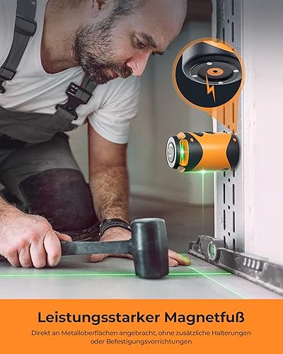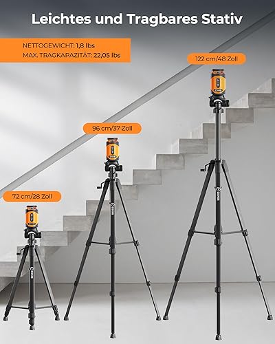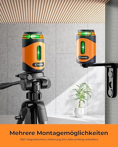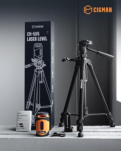 Kreuzlinienlaser mit Stativ, CIGMAN Kreuzlinienlaser Selbstnivellierend, Grüne Nivelliergerät Laser-Wasserwaage für Konstruktion und Ausrichtung, Lithium-Batterie, 1,2 m Stativ, Magnetischer Ständer