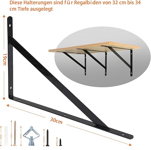 Regalhalterung 6 Stück I 300 x 190 mm I REGALTRÄGER mit SCHRAUBEN I Wandhalterung Regal Tragkraft 30 kg I Regalträger | Wandmontage Konsole (6 Stück)