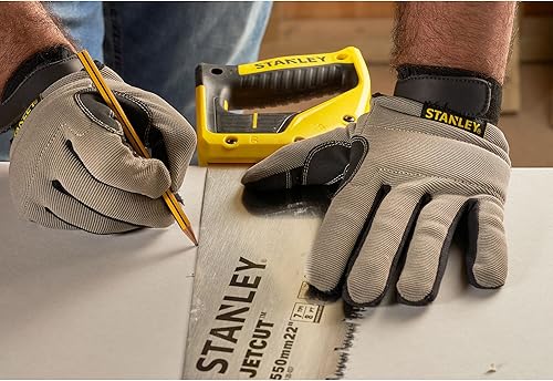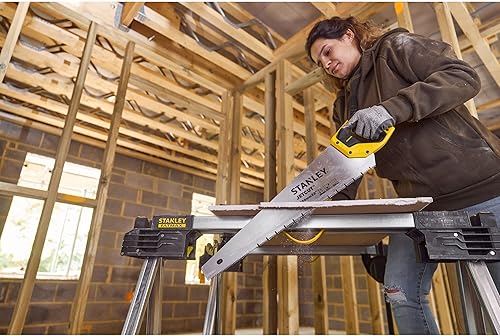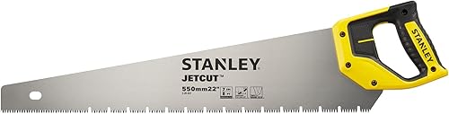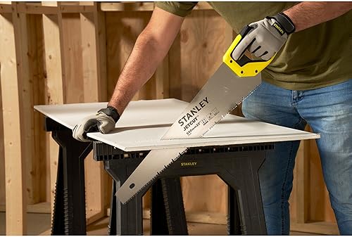 Stanley JetCut Gipskarton-Handsäge (550 mm Länge, 7 Zähne/Inch, Bi-Material Griff, 45°/90° Anschlag, Hardpoint, für Gpskartonplatten oder andere faserige Materialien) 2-20-037