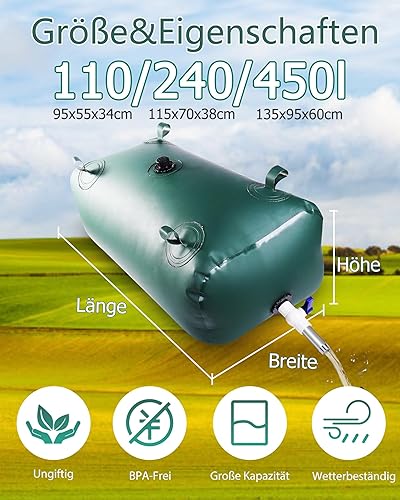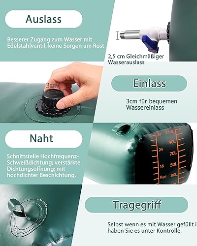 Ezcasch Wasserbehälter mit Skala 63.4gal/240L - Wassersack Tragbarer Wasserspeicherblase mit Ventilen Faltbarer Wasserspeicher für Außen