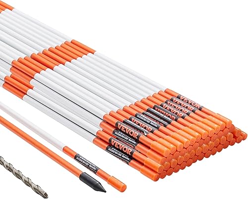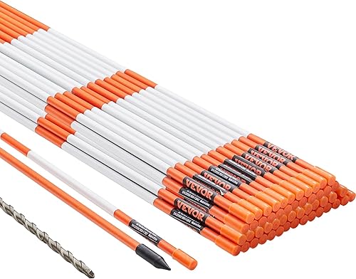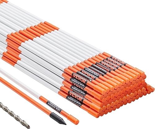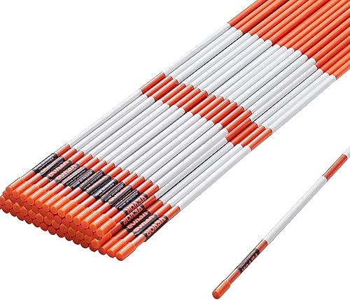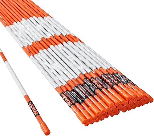 VEVOR 50er-Set Schneestangen 47,8 Zoll (121,5 cm) Auffahrtstangen orange UV-beständige Beschichtung Reflektierende Einfahrtsmarkierung Inkl. 1 Paar Schutzhandschuhe und 1 extralangen Stahlbohrer