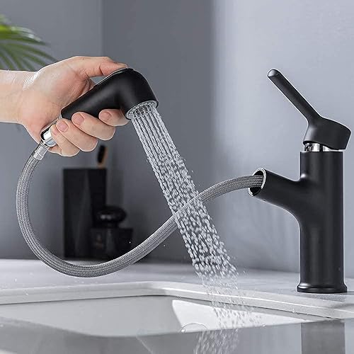 ONECE Wasserhahn Bad mit ausziehbar Brause, Waschtischarmatur aus Messing Einhebelmischer Badarmatur Waschbecken Mischbatterie Armatur für Badezimmer, Chrom