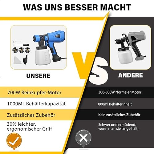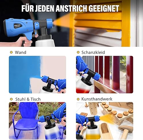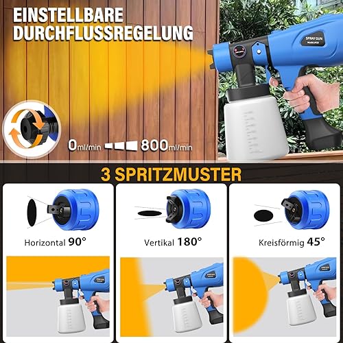 Elektrisches Farbsprühsystem 3 Sprühmodi, 600W Farbsprühgerät mit 3 Vollmessingdüsen und Sprühflasche aus 1000ml, Lackierpistole zum Sprühen von Pestiziden, Desinfizieren, Wandmalerei - 2024 Neu