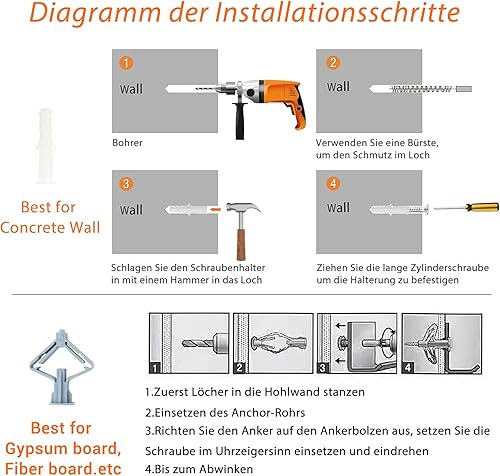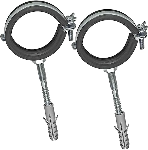 2 Stück Set Gelenk Rohrschellen mit Dübel und Stockschrauben 2 1/2' Zoll für Rohr AußenØ 75-80 mm
