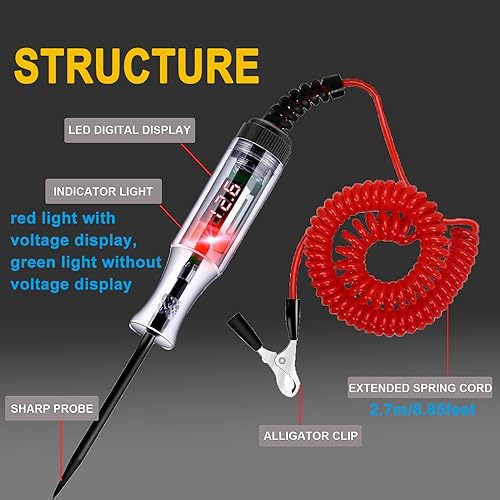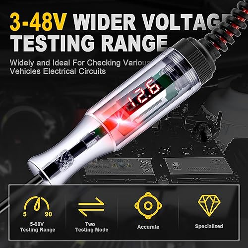 Greluma 1 Stück 3–48 V Kfz-Stromkreistester mit Voltmeter,robuste LED-Hintergrundbeleuchtung,Display-Testleuchte,bidirektionaler Gleichspannungsprüfer,Teststift für elektrisches Licht