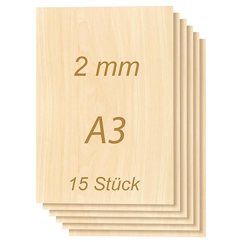ToCome 2mm Sperrholz A3 Linde Sperrholzplatte Laserfähig 420 x 297 x 2mm Linden Holzplatte Plywood 2mm Holz für Laser (15 Stück)