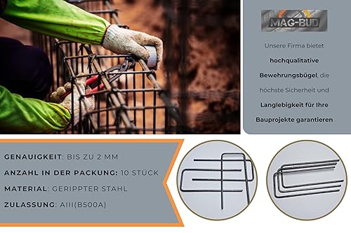 U-Bügel Ø8 mm Steckbügel 10er Pack Betonstahl S1 200 300 mm S2 200-700 mm Bügel Bewehrungsstahl Baustahl H=100mm|S1=200mm|S2=300mm