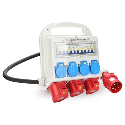Sonnewelt Wandverteiler mit Leitungsschutzschalter und FI,5 Polig Baustromverteiler mit 2xSchuko-Steckdose und CEE-Steckdose 16A Stromverteiler für Innen und Außen