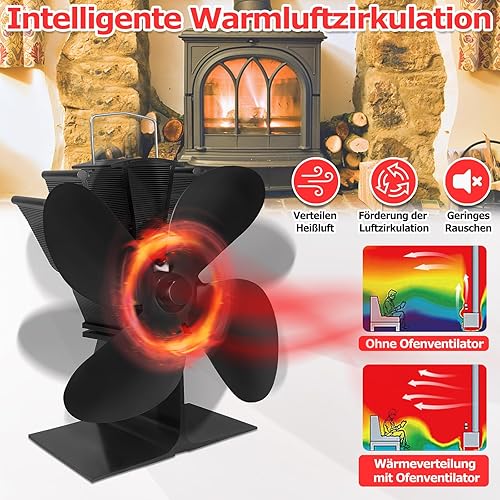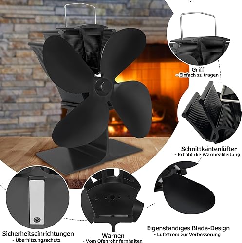 Yznahre Kaminventilator, 4 Flügel Ofenventilator Ohne Strom, Kaminofen Ventilator für Holzöfen, Stove Fan for Fireplace Umweltfreundlich Umwälzung