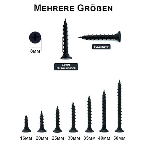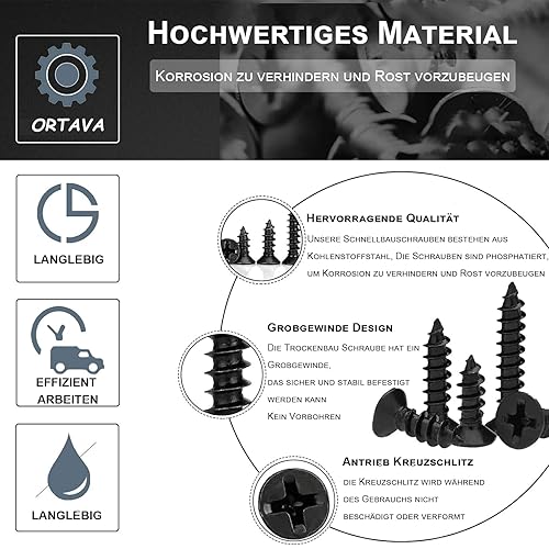 ORTAVA 200 Stück Schnellbauschrauben 3,9 x 50 mm, Trockenbauschrauben Grobgewinde und Kreuzschlitz Phosphatiert mit Schraubendreher Bit, Rigips Schrauben, Gipskartonschraube, Holzschrauben (Schwarz)