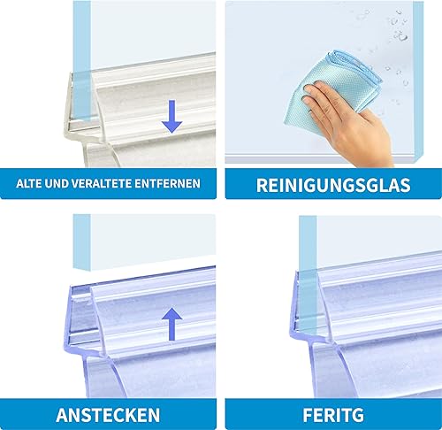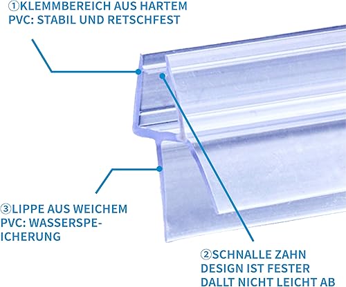 KOOBON Duschdichtung 2 x 80cm für 4mm 5mm 6mm Glastüren Dichtung Dusche Glastür für Duschtüren Duschwand Badewanne Duschkabine Ersatzdichtung mit dicker Gummilippen
