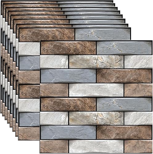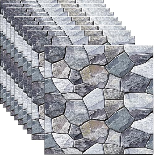 JIATUMEIMAOYI 10 Stück 30x 30cm 3D Wandpaneele Selbstklebend PVC Wandaufkleber Wasserdicht Wandtapete,Wall Panel für Wohnzimmer,Schlafzimmer,Küche,Wandverkleidung (Steinwand)