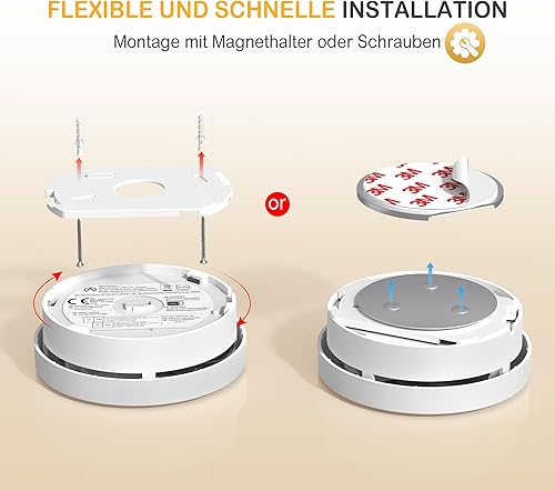 Andyssey GS526 Rauchmelder 10 Jahre mit Magnethalterung, Zertifiziert DIN EN14604, Rauchwarnmelder mit Fotoelektrischem Sensor, 85 dB Alarmlautstärke, 2 Stück