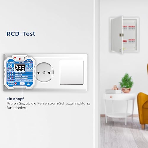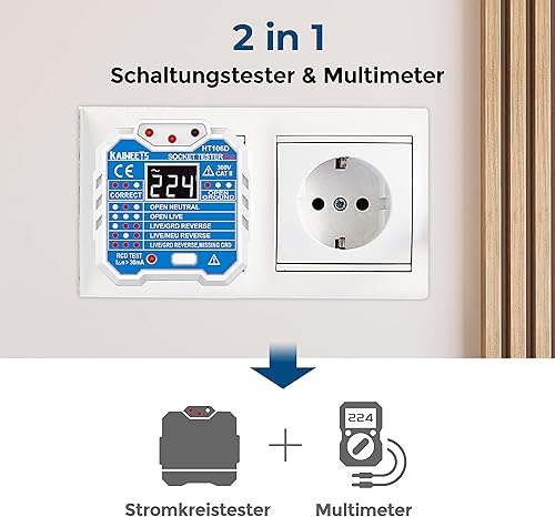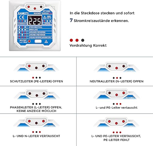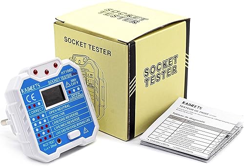 KAIWEETS Steckdosentester mit RCD-Prüfung und LCD-Voltage-Display, 48-250V/45-65Hz, CAT ll 300V zum Messen der Spannung, Untersuchen des Stromkreises.