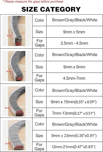 Bürstendichtung Türdichtung Selbstklebend 9 mm(B) x 23mm(D) x6M(L), Türbodendichtung Insektenschutz, Dichtungsbürste für Tür, Fenster, Kleiderschränk,Zugluftstopper für Türen