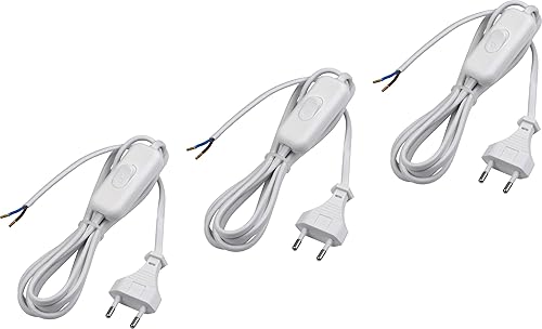 Meister Euro-Zuleitung mit Schalter - 2 Meter - weiß - Kunststoffleitung H03VVH2-F2X0,75 - 2 Adern - IP20 / Anschlussleitung mit Euro-Stecker / Anschlusskabel / Installationsmaterial / 7442510