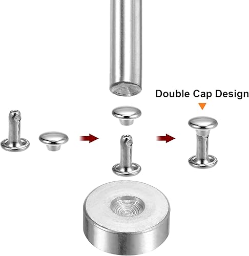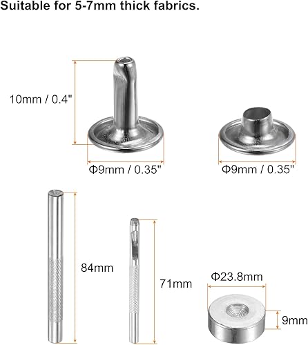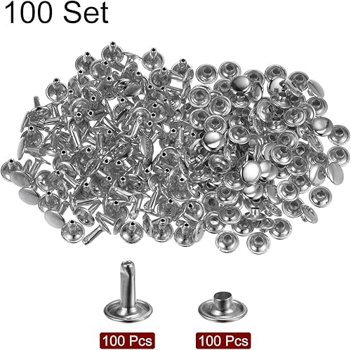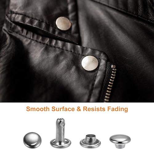 QUARKZMAN 100 Sets Ledernieten, 10 x 9 mm, Metall, Doppelkappe, Nieten, Druckknöpfe, Nieten, Verschlüsse mit 3 Setzwerkzeugen, Nieten für Lederhandwerk, DIY, Reparatur, Dekoration, Silberton