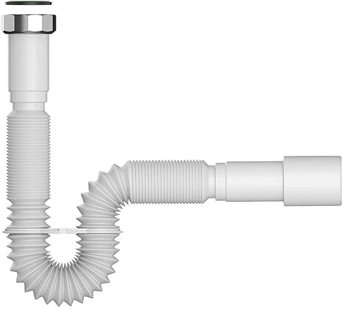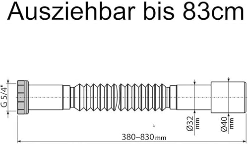 Flexibler Siphon/Ablaufschlauch 1 1/4' Siphon für Waschbecken, Röhrensiphon aus Kunststoff | 5/4'- Ø 32/40mm, Ablaufgarnitur für Waschtisch, Ausziehbar von 39-83 cm