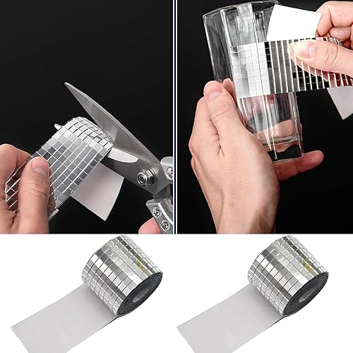 Mini Mosaik Spiegelfliesen,2 Rollen 3200 Stück Spiegel Mosaikfliesen Aufkleber Disco Kugel Deko Fliesenspiegel Selbstklebend Spiegel Selbstklebend für Bad Küche Wohnzimmer KTV Hause DIY Dekoration