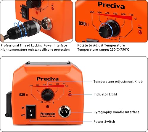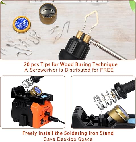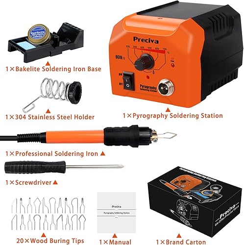 Brandmalstation, Preciva Brennkolben Set mit 20-teilig Spitzen, Brandmalerei Set Bastelset Lötstation Lötkolben Set Temperatur Einstellbar 250℃ - 750 ℃, Brandmalkolben für Holz, Leder und Kork