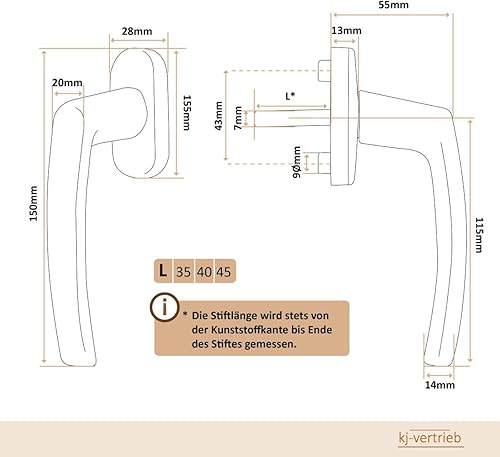 Aluminium Fenstergriff Nevada, Farbe:Braun RAL 8019, Stiftlänge:30mm