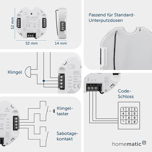 Homematic IP Smart Home Wiegand-Schnittstelle, damit kann EIN Wiegand-fähiges Endgerät, wie EIN Code-Schloss, ins Homematic IP Smart-Home-System integriert Werden, 155182A0 Grau