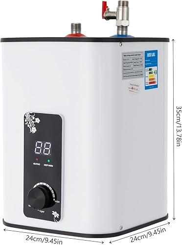 MINRS Warmwasserspeicher 8L Untertisch Boiler 1500W Kleiner Druckfester Warmwasserspeicher mit Thermostop-Funktion Untertischboiler 0-65℃ Einstellbarer Temperatur Einstellbar für Küche Bad