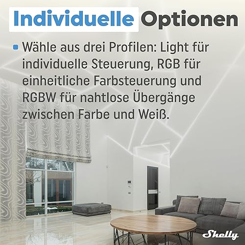Shelly Plus RGBW PM | WLAN und Bluetooth Controller für LED-Streifen |12-24 VDC | Dimmer Unterputz | Lichtsteuerung & Strommessung | Kein Hub erforderlich | iOS-Android-App