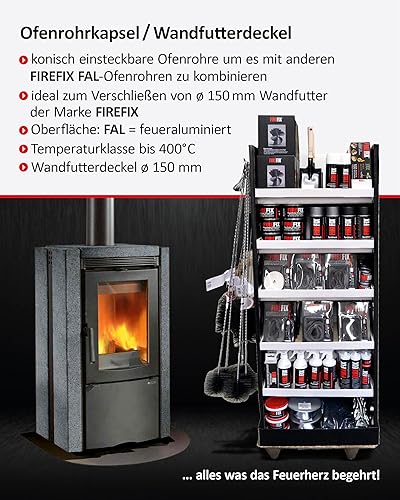 Firefix A150/K FAL Ofenrohrkapsel für Ofenrohr 150mm I Wandfutterdeckel I Kaminrohr Zubehör aus hochwertigem Stahlblech, 0,6mm I Konisch einsteckbar, Silber
