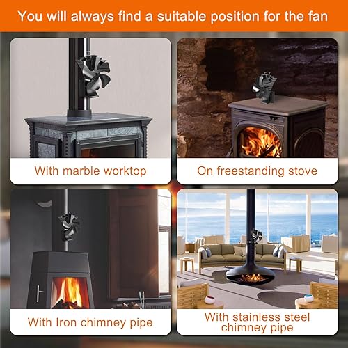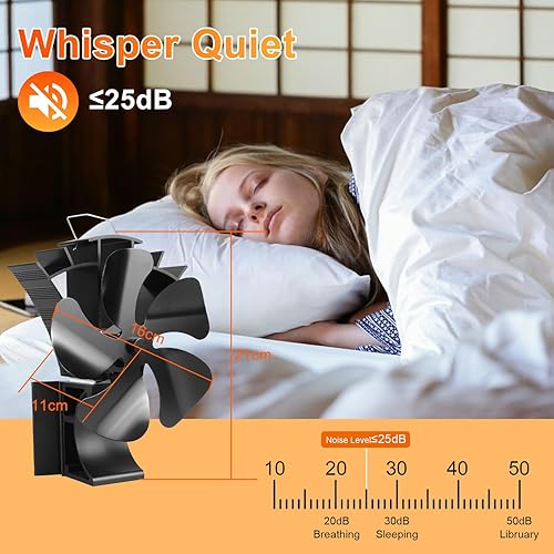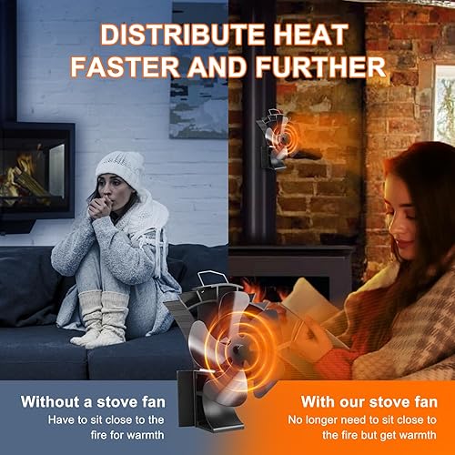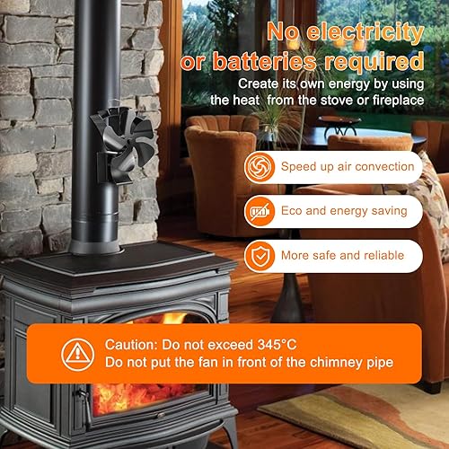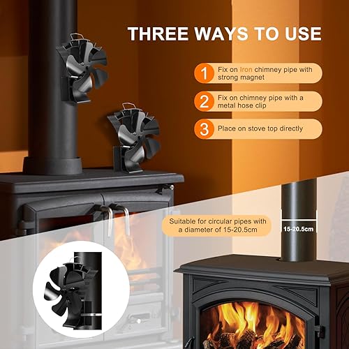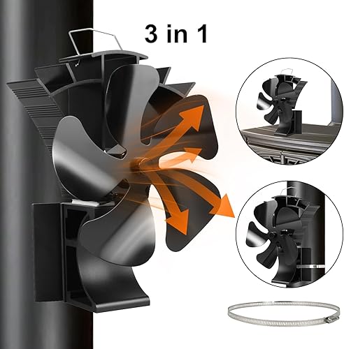 Tomersun Ofenventilator Magnetisch 3 in 1 Leiser Kaminventilator 5 Blätter Kein Strom Kaminventilator Ohne Strom für Holzofen/Kamin/Ofenrohr Ofenventilator für Kamin mit 1Stk Ersatzring