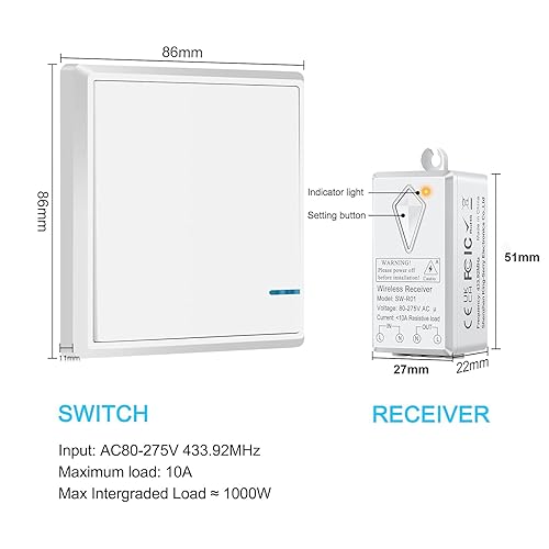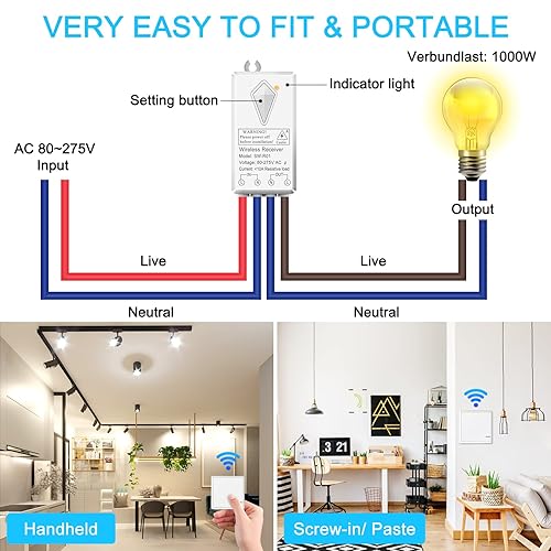 230V Funk Lichtschalter Set Für Licht, NineLeaf Funkschalter mit Empfänger, Kabellose Schalter IP66 Wasserdichte EIN/AUS Lamps bis 1000 Watt Außen 400M Innen 100M, 3PK-Schalter 1PK-Empfänger