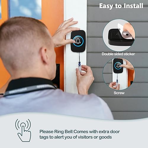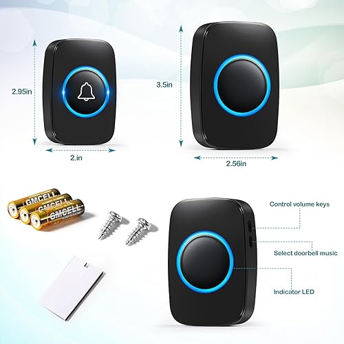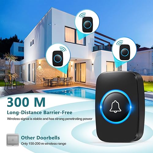 Blendura Funk-Türklingel Set, 300m Funkreichweite Türklingel IP44 Wasserdicht Elektronischer Türklingel Haustürklingel mit Plug-In-Empfängern, 60 Melodien, 5 Lautstärkestufen, Schwarz
