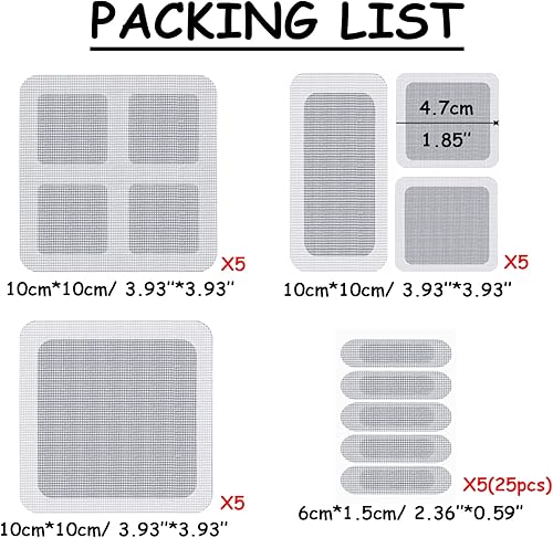 2m + 20 Stück Fensterscheibe Reparatur-Band Flicken, VEINARDYL Selbstklebend Bildschirmtür-Aufkleber Ersatz Reparatursatz Maschen-Reparatur für Reparieren von Löchern Risse