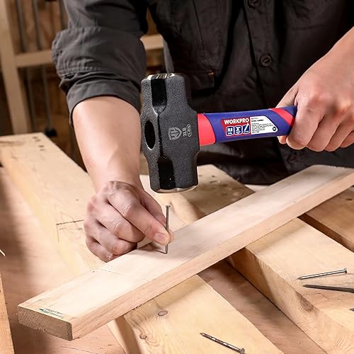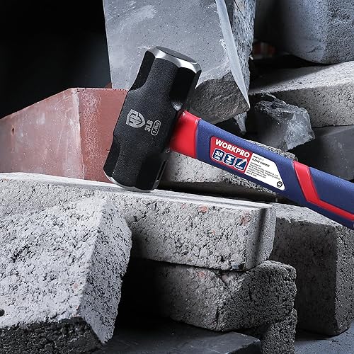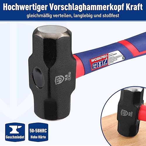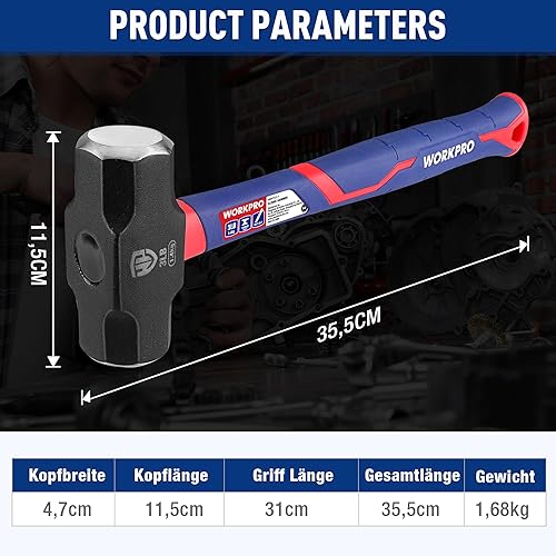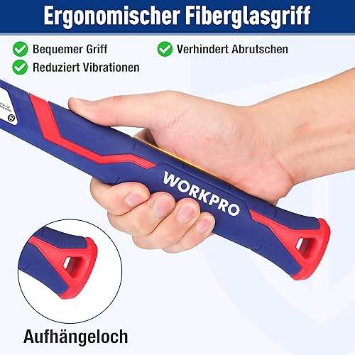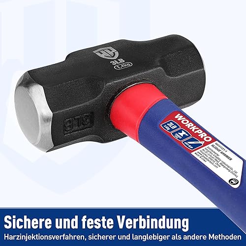 WORKPRO Fäustel 1,68 kg, Vorschlaghammer mit Glasfaserstiel, 31 cm Griff, Geschmiedeter Stahlkopf, Rutschfester Ergonomischer Griff, für Gartenarbeit, Bauwesen