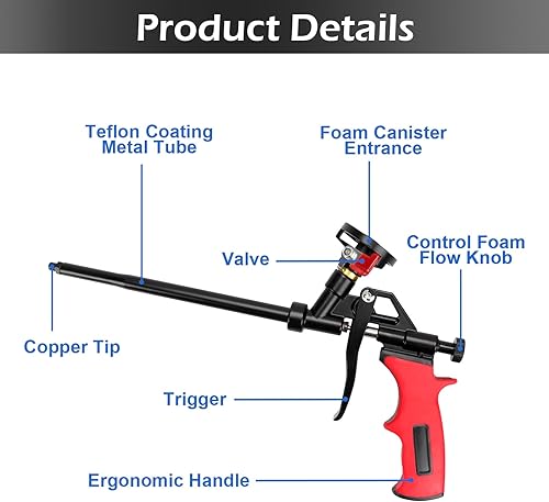 LYCXAMES PU Schaumpistole, 2 Stück Bauschaumpistole mit dem Ventil, BENÖTIGT KEINE REINIGER, metall Dosierpistole mit ergonomischem Kunststoffgriff für Heimwerker und Profi, Rot