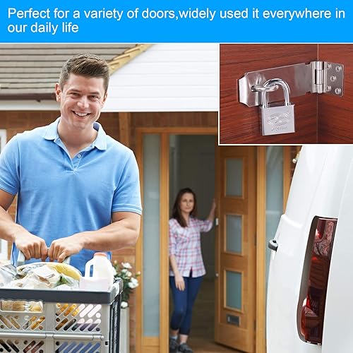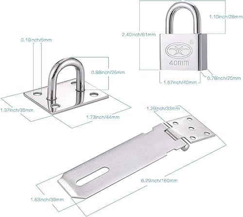 Zocipro Edelstahl Schloss Riegelschloss Haspe(127mm) mit Vorhängeschloss(40mm) & Schrauben, Türriegel für Gartentor, Nicht-verformbares Türschloß für Holztür, Schuppen, Schrank, Garagentor