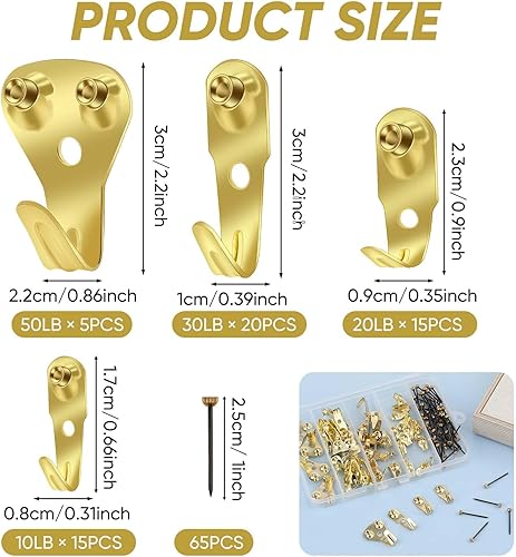 Jeffdad 120 Stück Bilder Bildaufhänger Set, Vielseitiges Bilderhaken Bild Hängende Haken Kit mit Nägeln, Bilderhaken zum nageln 4 Größen Bildaufhängeset für Rahmen Spiegel Gemälde Bilderbefestigung