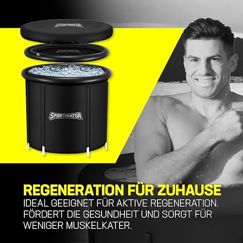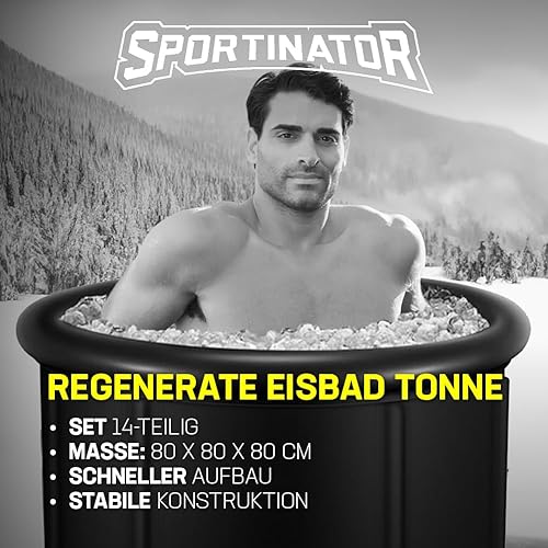 SPORTINATOR Regenerate Eisbad Tonne Ø 80 cm | 400 L | Kältetherapie & Regeneration | 5-Schichten-Gewebe | inkl. Zubehör Komplett-Set, Thermometer & Abflussschlauch (Schwarz)