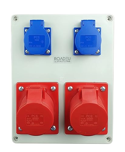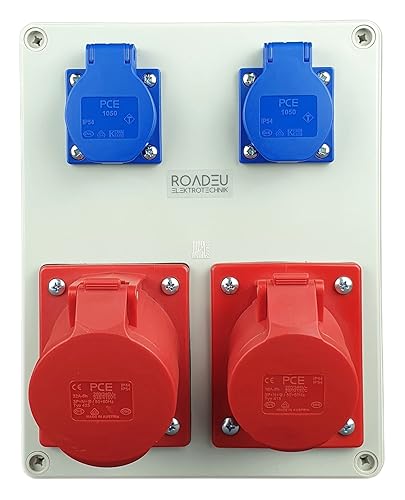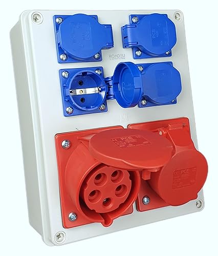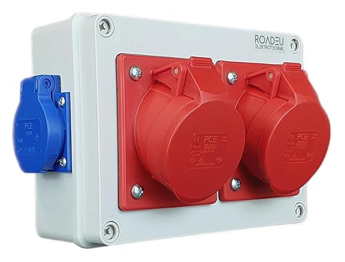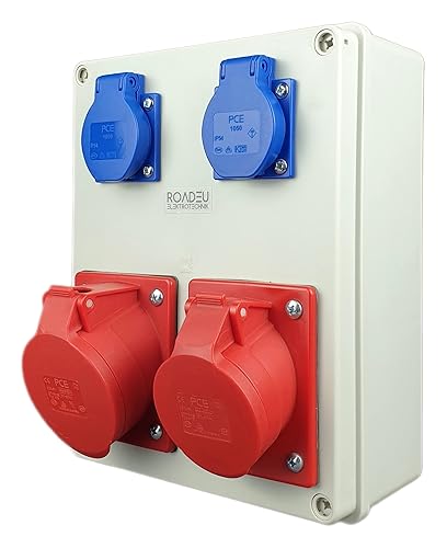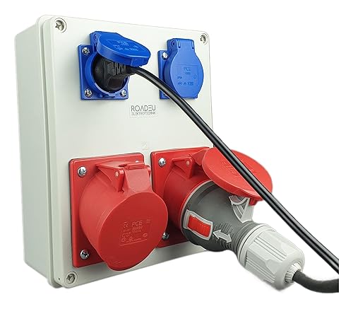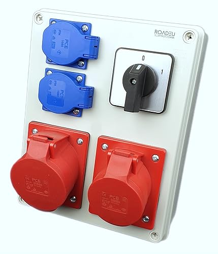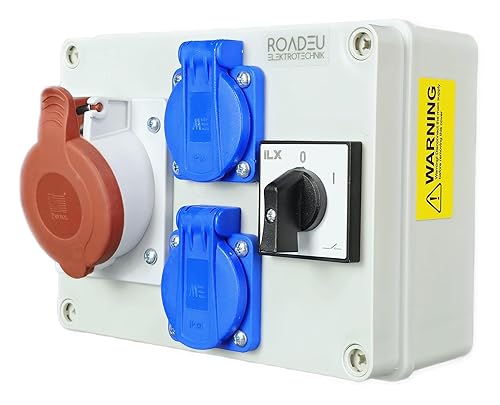 RoadEu - Stromverteiler und Schalter - CEE Steckdose 16A und 2x Schuko Verteiler - Steckdosenverteiler mit Hauptschalter 0-1. CEE 400V Steckdose mit Schalter.