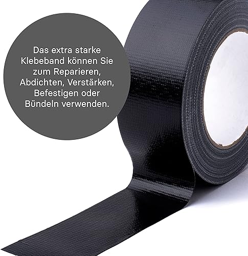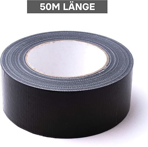 MAXKO Panzertape Schwarz Gewebeband - 50m x 50mm - Gaffa Tape - Panzerband Duct Tape Gewebeklebeband - 50m Klebeband Schwarz - Gaffer Tape Schwarz - Textilklebeband