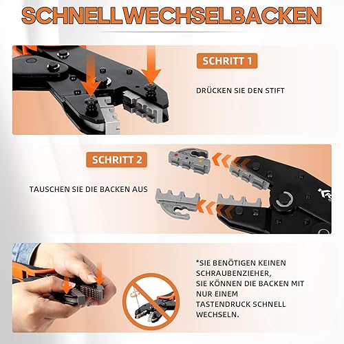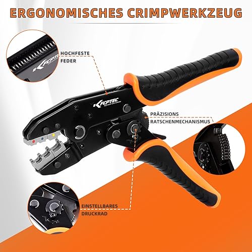 KF CPTEC 9-teiliges Crimpzange Set für isolierte&nicht isolierte Kabelschuhe,Solarstecker, Aderendhülsen - Kabelscuhzange,Aderendhülsenzange - Kabelschuh Crimpzangen mit Wechselbacken & Abisolierzange