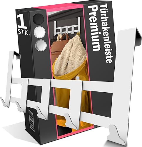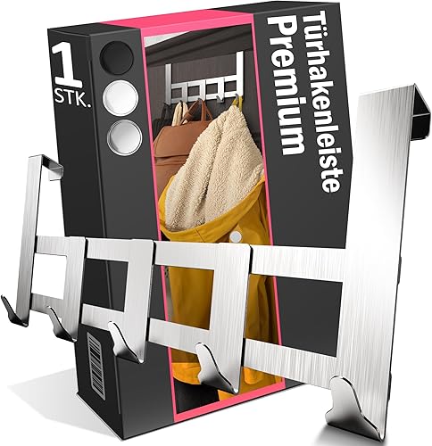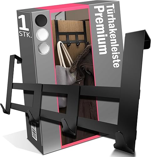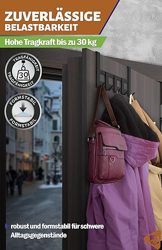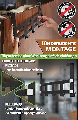 Menz Premium Türgarderobe zum Einhängen, schwarz - Rostfreie Türhaken zum Einhängen Edelstahl, Kleiderhaken Tür mit hoher Tragkraft - Universelle Türhakenleiste mit 5 Haken, Handtuchhalter Tür