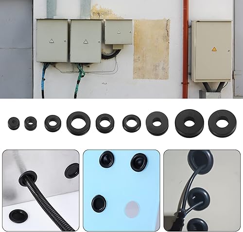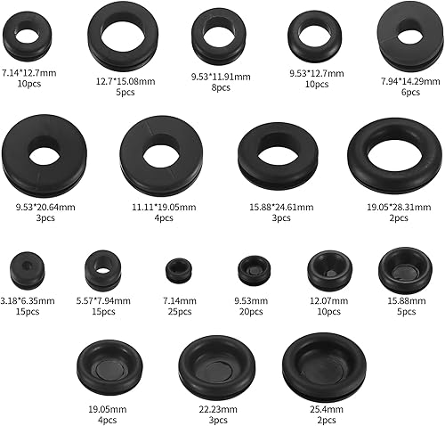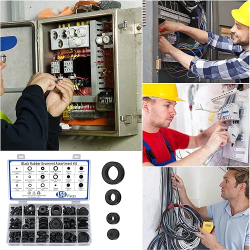 150 Stk Gummi Kabeldurchführung, Gummi Tüllen Sortiment Kit, Gummitüllen, Gummistopfen, Elektrischer Leiter Dichtungsring Kabeltülle, für Draht, Stecker, Kabel - 18 Größen, Schwarze