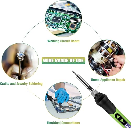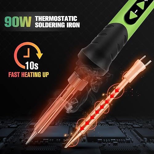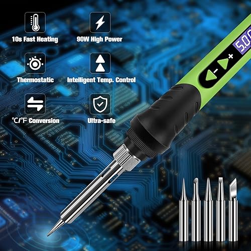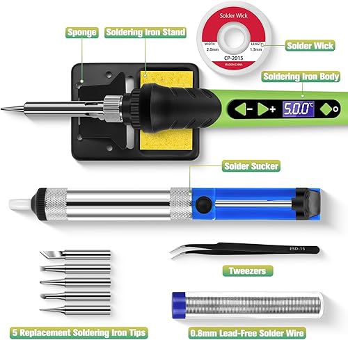 Lötkolben, 90W Lötset, LCD-12-in-1-Lötwerkzeug, einstellbare Temperatur 200–500 °C, mit 5 * austauschbare Lötkolbenspitzen,Entlötdraht,bleifreier Lötdraht, Entlötpumpe,Lötkolbenständer, Schwamm.