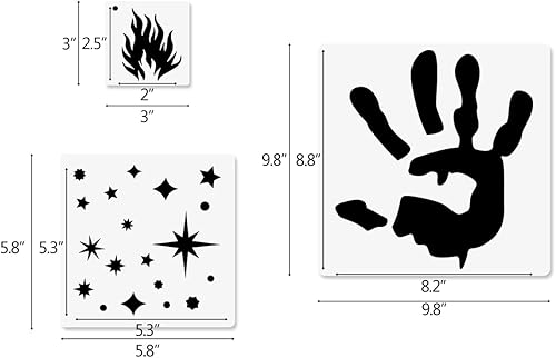 19 Stück Beiz und Sprühschablonen, Graffiti-Schablonen, Flammen-Feuertropfen, verschiedene Größen, wiederverwendbare Kunststoffschablonen zum Malen auf Holz, Tapete, Stoff, 25 cm/15 cm/7,62 cm