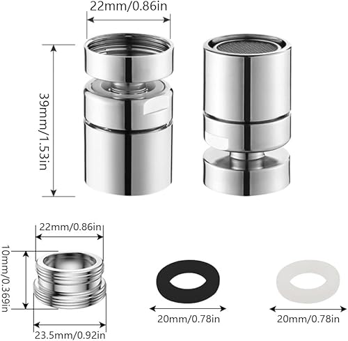 SPTwj 2 Stück Wasserhahn Luftsprudler Schwenkbar 360° Drehbar Wassersparender Sieb Strahlregler Messing Wasserhahn Aufsatz für Küche Bad Wasserhähne mit M22 Außengewinde oder M24 Innengewinde
