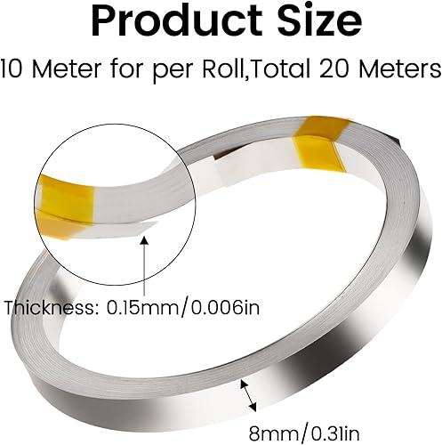 Aideepen 2 Stück 8 X 0.15 mm Nickelband 10 m Nickel Strip für Batterien für Nickel Plates Tape 18650 Lötfahne Batterien und Punktschweißungen